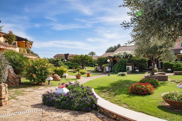 De kamers liggen in een mooie parktuin vol kleurige bloemen en palmbomen.